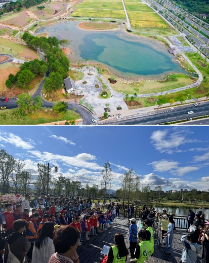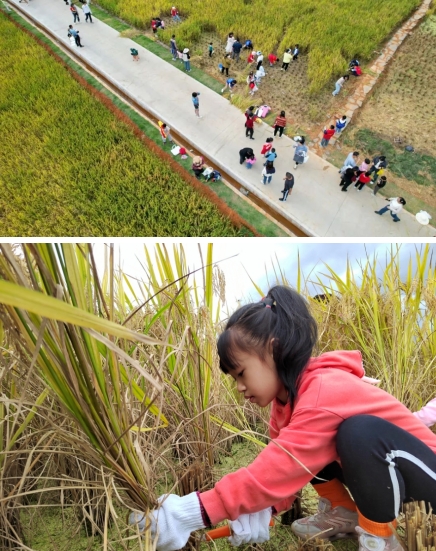 11月12日,市政集團(tuán)建設(shè)的龍州濕地水稻田迎來了豐收季,藍(lán)天白云倒影在清澈見底的湖面,伴隨著五彩繽紛的波斯菊花海搖曳生姿,金黃色的稻谷在秋風(fēng)中散發(fā)著陣陣稻香...城市的繁華與美不勝收的風(fēng)景和諧共生的畫面,吸引了來自龍巖中心城區(qū)中小學(xué)生、家長(zhǎng)及眾多市民前來參觀、體驗(yàn)。學(xué)生們利用假期走進(jìn)田間課堂,真切體會(huì)了龍巖“新晉網(wǎng)紅打卡地”的獨(dú)特魅力。