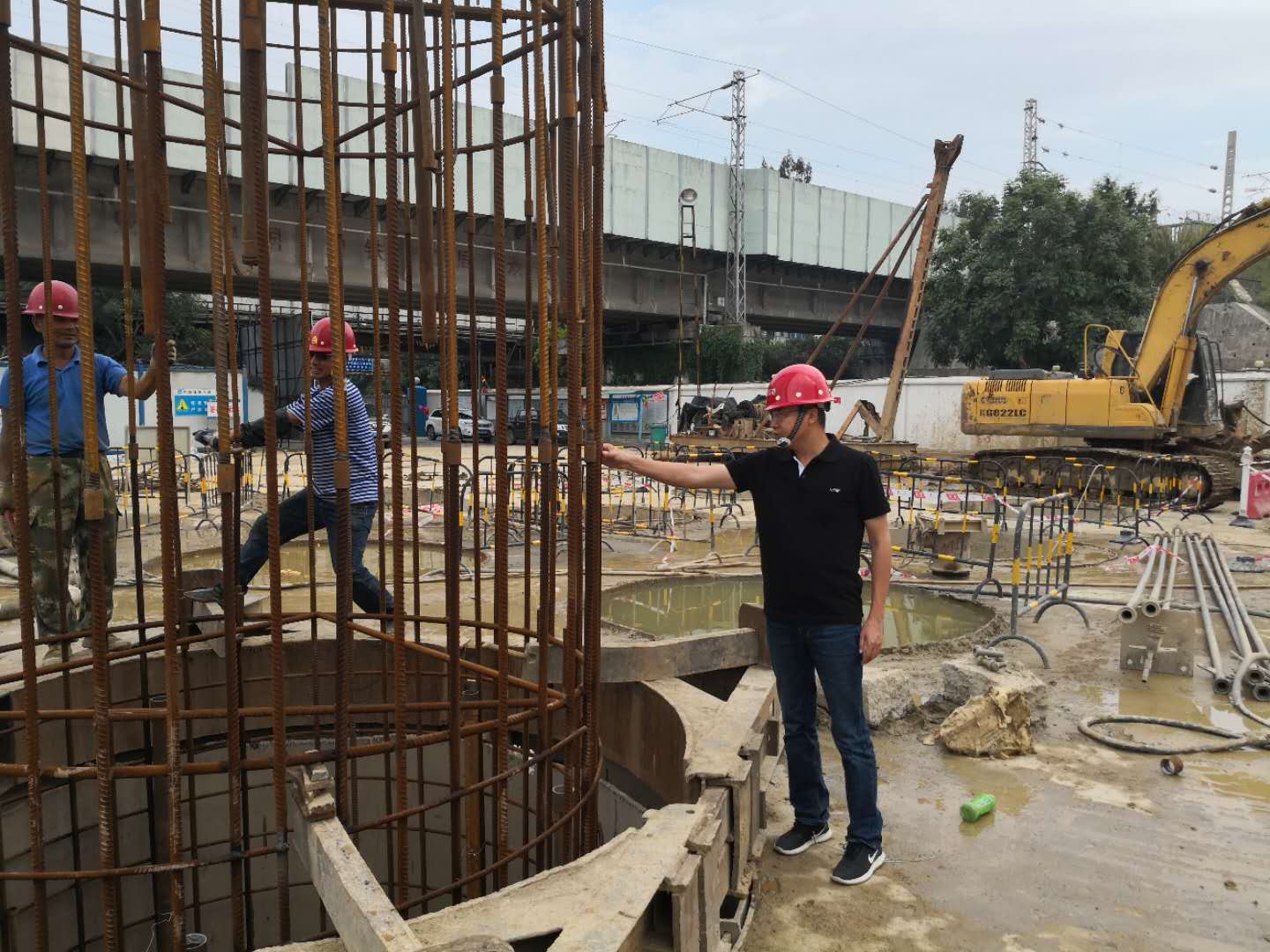 427日,在龍巖火車站片區(qū)路網(wǎng)項(xiàng)目工地,犀牛路二期正在進(jìn)行樁基、承臺(tái)和立柱施工,站前高架橋正在進(jìn)行墩柱和混凝土現(xiàn)澆梁施工,一派熱火朝天的建設(shè)場(chǎng)景,39歲的龍巖國資企業(yè)干部孔華剛剛榮膺2018年“福建省勞動(dòng)模范”,從福州開完表彰會(huì)載譽(yù)歸來的顧不上休息,馬不停蹄地深入站前高架橋和犀牛路二期項(xiàng)目一線,檢查安全文明施工情況,督促項(xiàng)目施工進(jìn)度。